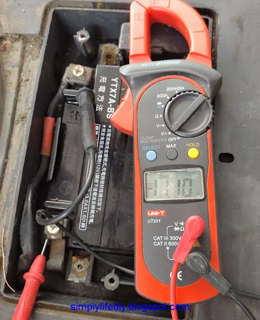 - 電壓測試:使用三用錶的電壓計測量蓄電池的電壓。正常的充電蓄電池應該在 12.6 伏特以上,如果低於 12.4 伏特則需要充電或立刻更換。參考鉛酸蓄電池更換時機